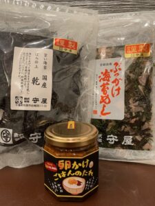 S様奥様より『卵かけごはんのたれ』『ぶっかけ海苔めし』『うまい海苔』をいただきました。
